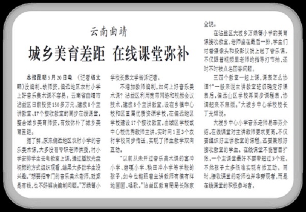 2017年2月,《人民日报》报道了当地“在线课堂”项目,大力肯定该项目对推动山区基础教育的作用